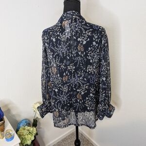 NEW FREE PEOPLE SOLSTICE SHIMMER TIE FRONT KIMONO, MIDNIGHT COMBO, Shimmering floral print kimono featuring a tie front silhouette with slouchy dolman sleeves. Deep navy combo. Free People tags have been cut to prevent in-store return.