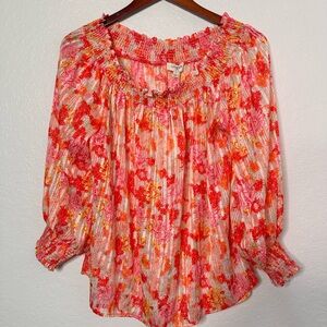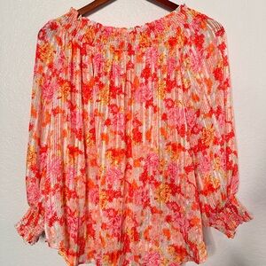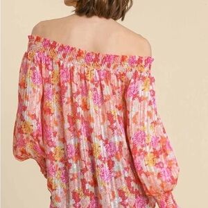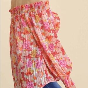 Umgee Pink and Orange Floral Off-Shoulder Blouse