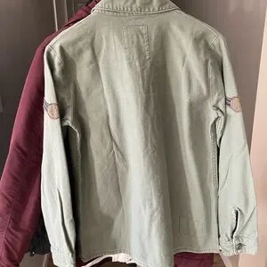Stylish TNA utility jacket. Features button closure and chest pockets. Perfect for casual wear, size medium.