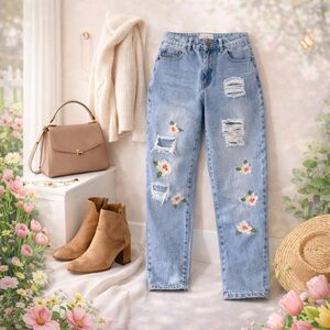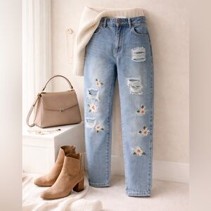 Chelsea & Violet floral embroidered distressed jeans 🌸✨