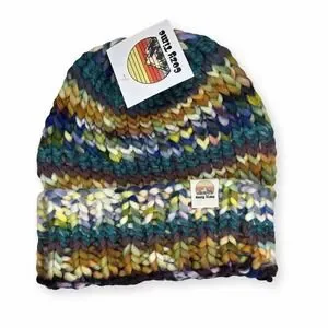 Handmade by me. One of a kind - features luxury merino wool I dyed myself, a wool blend yarn, and other quality yarns by Lion Brand and KC Yarns. Lining of the brim is a soft plush yarn for a never itchy fit. Stretchy, retro, and boho. Thank you for supporting my art. Includes a monogrammed cloth storage bag and makes a great holiday gift