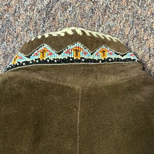 Brown suede jacket with fringe detailing and fine beadwork. Picked up in the Yukon, seldom worn.