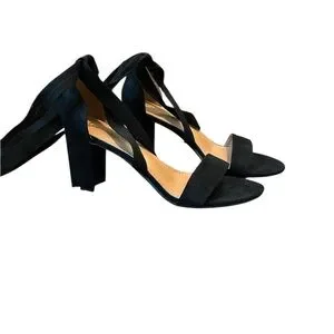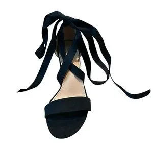 New-Elegant Black Heels Lace up Ribbon Tie Strappy Sandals Size: 7