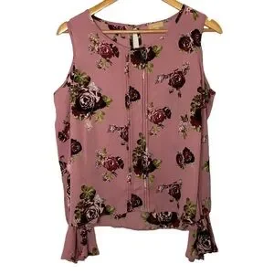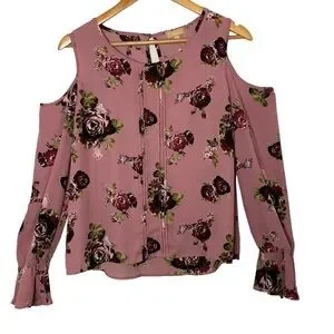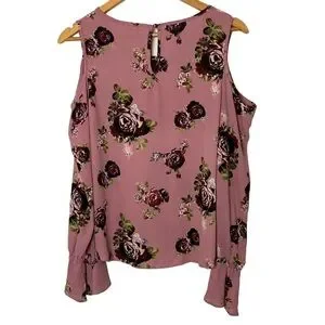 Takara Floral Semi-Sheer Cold Shoulder Blouse Top S