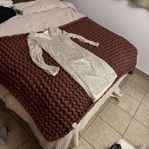Elegant long-sleeve dress covered in shimmering silver sequins. Perfect for special occasions. Worn once !