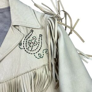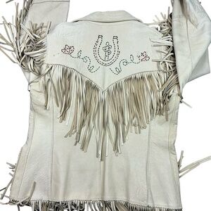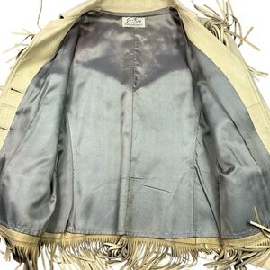 Vintage 1950s Jo-Kay western leather beaded light tan fringe jacket, USA S/M