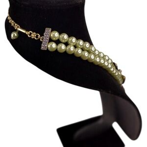Heidi Daus Pale Sage Green Pearl and Pastel Crystal Necklace