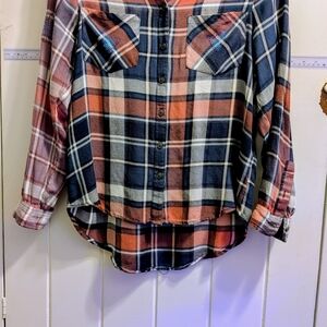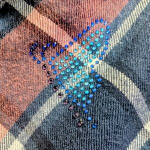 Upcycle flannel shirt. Medium adult size. Bleach dip. Butterfly bling on both front pockets, right sleeve and back. Variety of colors, very soft flannel. 17" Pit to Pit.