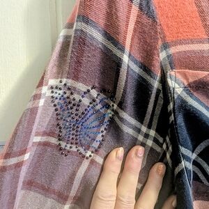 Upcycle Lucky Brand Medium Dip Bleach Flannel Shirt w/ Butterfly Bling 17" P2P