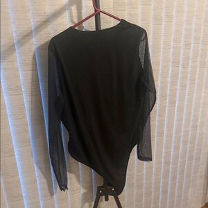 Stylish long-sleeve bodysuit. Bold red design on black fabric. Perfect for a night out.