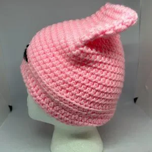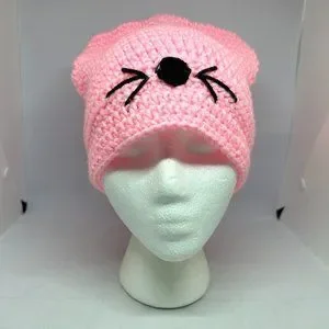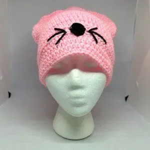 Handmade Crochet Light Pink Knit Cap w/Black Accent OS