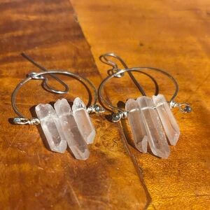 These chic silver hoop earrings feature natural quartz stones, adding a unique touch to your style.