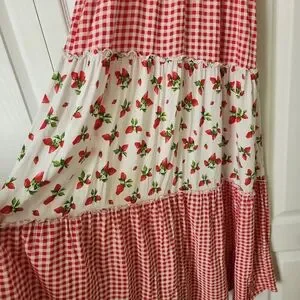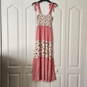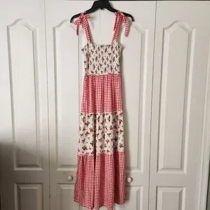 Bebop gingham checkered strawberry smocked maxi dress peasant M tiered festival
