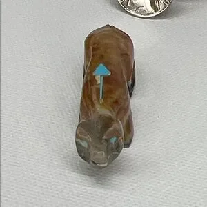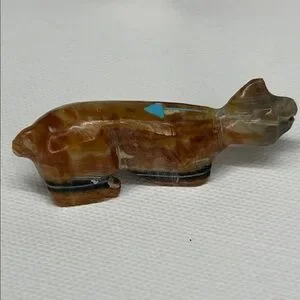 Unique handcrafted Picasso stone bobcat figurine. Features earthy brown tones with blue accents.