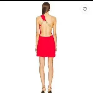 Eye-catching red dress with a daring backless design. Features elegant chain accents. Ideal for sophisticated events.