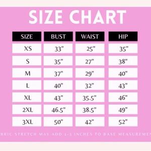 Size chart on last slide