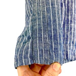 Quince European Linen Wide Leg Pull-On Pants Ankle Chambray Striped Sz S