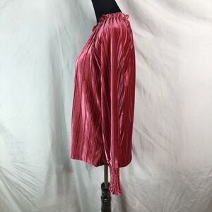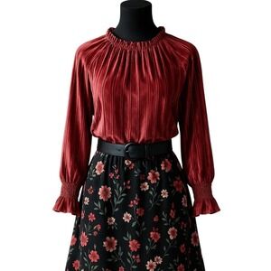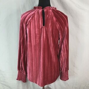 CABLE & GAUGE Sie Medium Ribbed Velvet Smocked Cuff Long Sleeve Keyhole Blouse