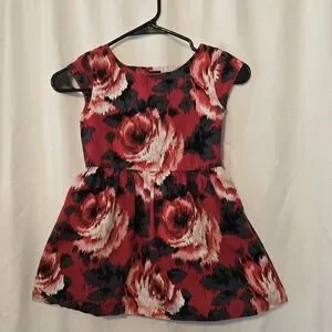 Gap Charming kids dress featuring a vibrant floral pattern in red and black. Perfect for any special occasion. Size 6 7 regular #11