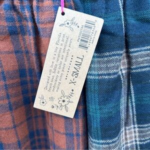 NWT Natural Life Plaid Flannel Rust Navy Green Patchwork Pants Women’s XS