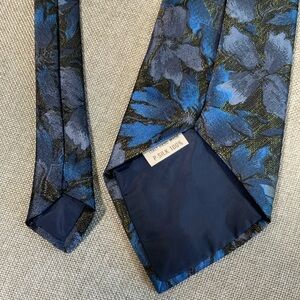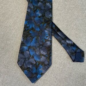 Add a touch of sophistication with this floral patterned tie. The blend of blue and black offers a stylish look for any occasion.