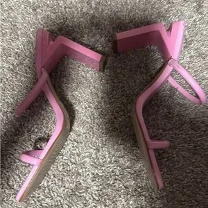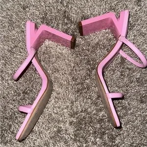 Chic pink heels with elegant straps. Perfect for stylish outings.