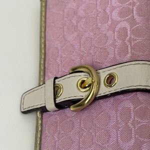 Y2K Coach Soho signature flap should bag and matching wallet set in pink/ purple canvas with leather trim and gold-tone hardware