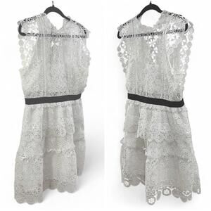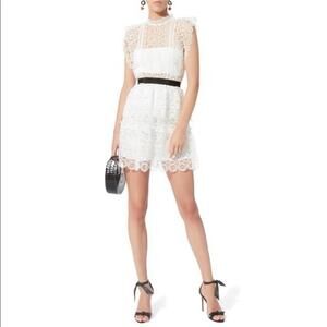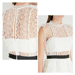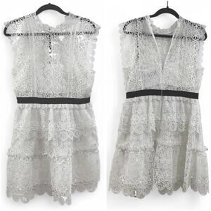 SELF PORTRAIT | US SZ 10 | White Circle Floral Lace Tiered Mini Dress MSRP $440