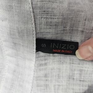 Effortless Italian-made linen top by Inizio. This lightweight button-up has a relaxed, easy silhouette with roll-tab sleeves—perfect for casual wear, travel, layering, or warm-weather styling. Breathable linen fabric gives it that lived-in, European casual look that pairs beautifully with jeans, linen pants, or skirts.