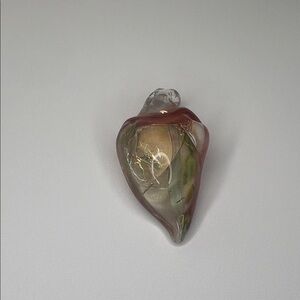 Beautiful hand blown art glass pendant featuring multicolor swirl details in red, green, gold, and clear glass.
