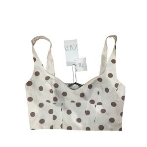 Zara Polka Dot Bustier Crop Top Cream Brown NWT Size M Corset Style Retro Chic Summer Party Aesthetic
