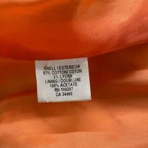 Fabric: 97% Cotton, 3% Lycra; Lining 100% Acetate