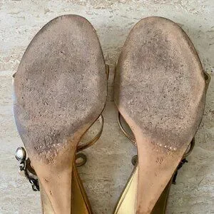 Good preowned condition — some scuffs on the toes and back heel insoles. No missing stones.