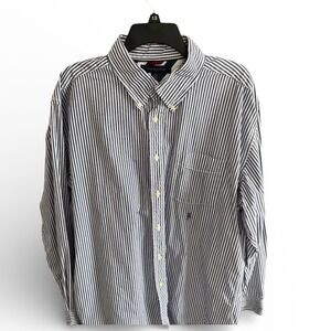 Tommy Hilfiger Mens XL Dark Blue White Striped Button Down Shirt Long Sleeve