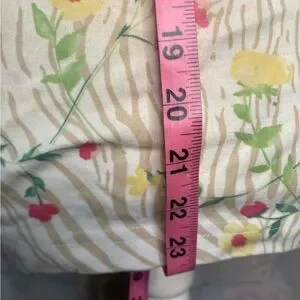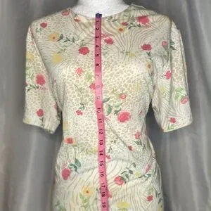 Chic top with a floral and animal print design. Features vibrant pink and green accents on a cream background.