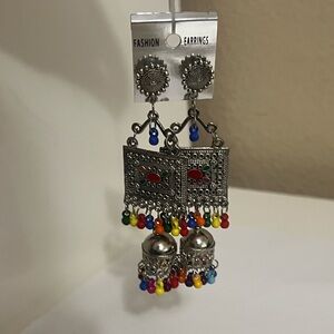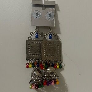 NWT | Boho Tribal Statement Earrings Silver Tone Multicolor Beaded