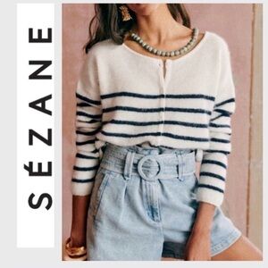 Sezane Gaspard Cardigan in Stripe navy/ecru S