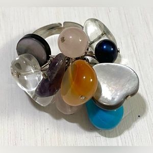 Vintage Multi-Color Adjustable Beaded Cluster Ring Classic Retro Feminine