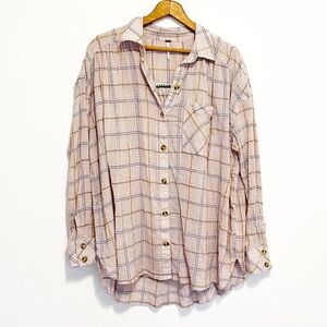 Free People Pink Plaid Oversized Button Down Shirt Womens Size Medium