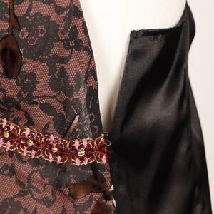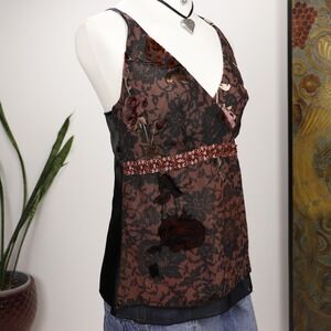 Y2K Brown Lace Halter Cami Top Floral Beaded Empire Bisou Bisou