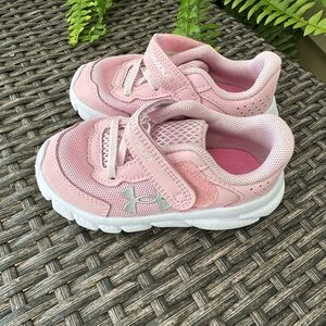 Light pink sneakers with breathable mesh. Velcro strap for easy wear. Ideal for active kids.