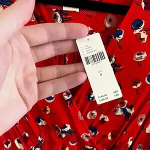 NWT Anthropologie by Maeve Red Long Sleeve Faux Wrap Dress Size 0