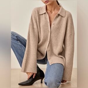 Reformation Fantino Cashmere Collared Cardigan Pullover Sweater Size Large