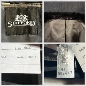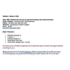 Stafford 46R 33x28.5 Solid Charcoal Gray Suit Nailhead