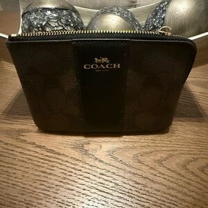 Elegant Coach wristlet with a sleek design. Ideal for daily use. Zipper damage, missing wristlet.