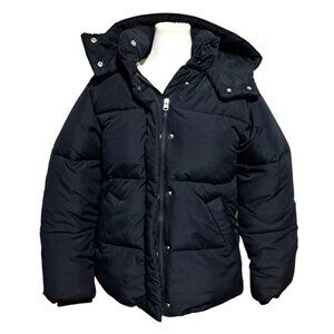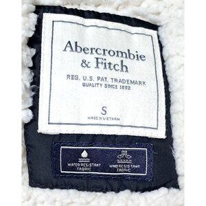 Abercrombie & Fitch Womens S Black Puffer Jacket Hood & Sherpa-Lined Water Wind
