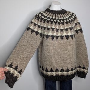 Vintage Thorvaldsens Bazar Icelandic Tan Cream Brown Wool Sweater L