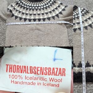 Vintage Thorvaldsens Bazar Icelandic Tan Cream Brown Wool Sweater L. Fuzzy, oversexed, unisex, beautiful, classic, winter style. One small stain on the front, haven't tried removing (see photos)