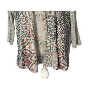 Ali Miles Top Size 1X Layered Mesh Animal Print Aztec Gray Boho Artsy Semi Sheer