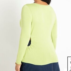 Pictured above is a new Eloquii Long Sleeve Top with Ruched Side Cutouts in Herbal Garden Green size 14/16